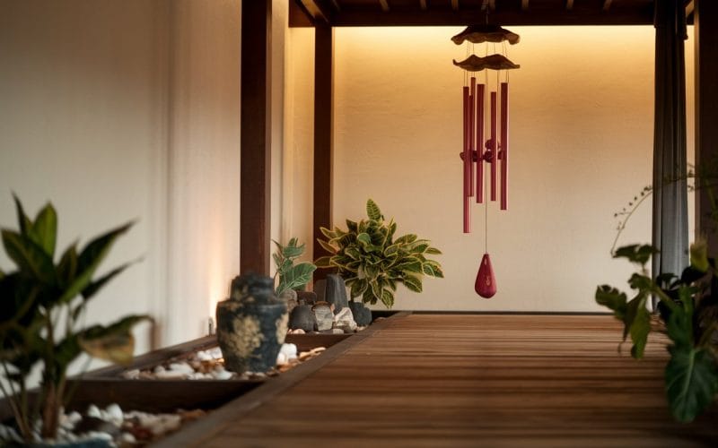Wind chimes are one of the most popular sound elements in Feng Shui. They are often used to clear negative or stagnant energy from spaces. The sound produced by wind chimes is believed to break up and disperse any negative Chi, allowing fresh, positive energy to flow freely.
